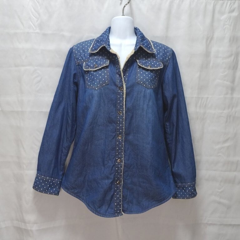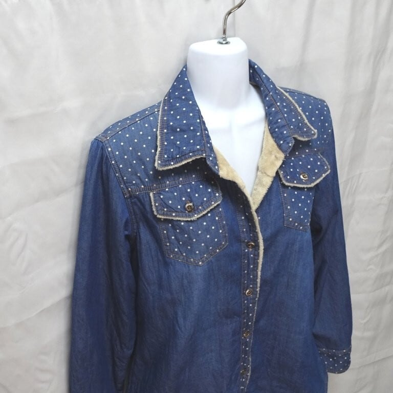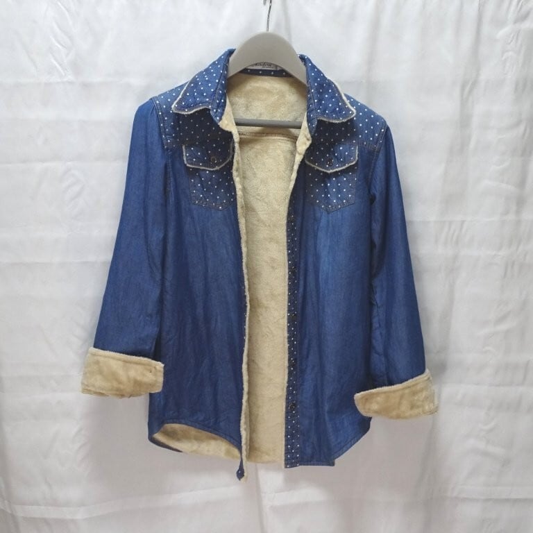 USED【送料込み】レディース水玉デニム調/厚手・あったか裏全面フェイクファー
